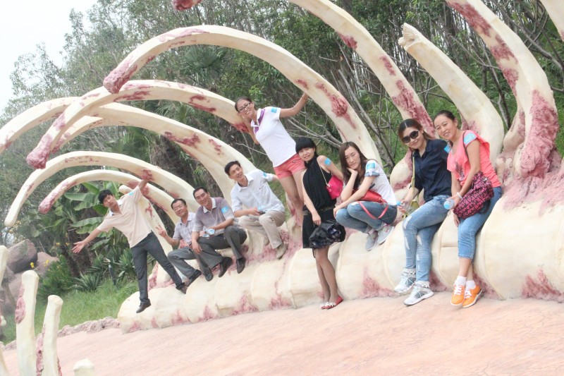 恐龍世界,在“血淋淋”的骨架上合影,非常難忘!