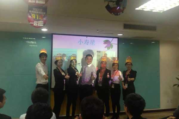 接下來(lái)是4月生日的伙伴們上場(chǎng)了,大連公司的所有伙伴和他們一起過(guò)生日,黃總為大家佩戴生日帽,伙伴們合影留念,一起留下這難忘的一刻。
