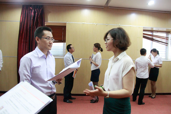 下午開場由新三板項目中心負責人顧兆坤律師從非常專業(yè)的角度分享了新三板產(chǎn)品為客戶帶來的價值,以及新三板項目的具體操作方式和銷售策略。接下來由產(chǎn)品研發(fā)中心辰輝老師,講解了《中層骨干實戰(zhàn)管理特訓營》產(chǎn)品的定義,產(chǎn)品優(yōu)勢及銷售策略,隨后即對該產(chǎn)品進行了“魔鬼式”的PK訓練。訓練持續(xù)了5個小時,直到深夜,雖然時間較晚,但是所有參訓人員均得到了最有效的訓練和提升,最終北京事業(yè)中心,北京業(yè)務中心,上海分公司取了前三名,并獲得了獎勵。