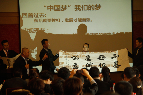 北京影響力企業(yè)管理有限公司總裁劉永忠關(guān)于《積累能量,蓄勢待發(fā)》的主題分享,拉開整個訓(xùn)練營的帷幕。積累經(jīng)歷、知識、人際、客戶、時間這五個關(guān)鍵要素, 讓所有管理骨干對未來的成長路徑與方法有了更加直觀的認(rèn)知;同時,有多少人追隨你、有多少業(yè)績因你而產(chǎn)生、有多少發(fā)展趨勢由你把握這三個體現(xiàn)能量的維度, 點出了一位具有能量的管理者的關(guān)鍵標(biāo)志。最后,劉總也對2013年的重點工作做了部署和規(guī)劃,分別從戰(zhàn)略、業(yè)績、人才等角度詳盡闡釋突破2013的重中之 重。緊接著孟昭春董事長《中國夢,我們的夢》的激情演講,更是牢牢把握十八大的主題,為管理骨干們在思想上樹立了標(biāo)桿和榜樣。北京影響力副總經(jīng)理王雪冰為 各個骨干精英帶來了“目標(biāo)百分百”的策